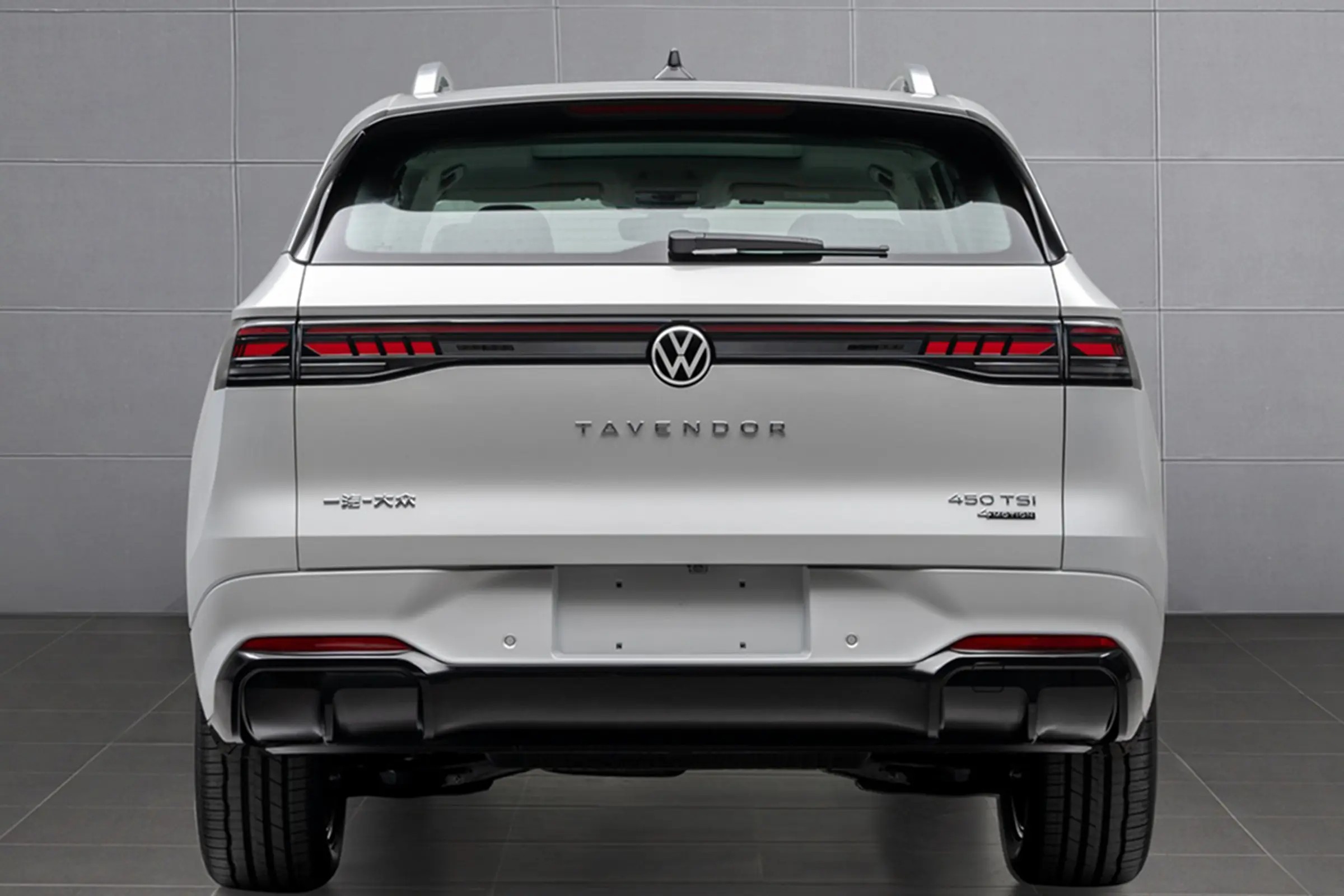 新款揽巡R-Line版的后包围加入了类似扩展器的造型,和现款车型相比除了尾灯内部结构不同,还取消了双边四出镀铬装饰口,而现款R-Line版的尾门右侧是380TSI标识,新款揽巡R-Line版则换成了450TSI标识,从这些细节能够看出,新车的动力发生了改变,提供高低功率两种调校。